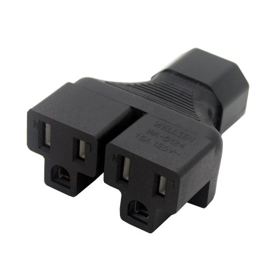 IEC 320 C14 to 2 X Nema 5-15R power adapter, C14 to 2x US female adapter